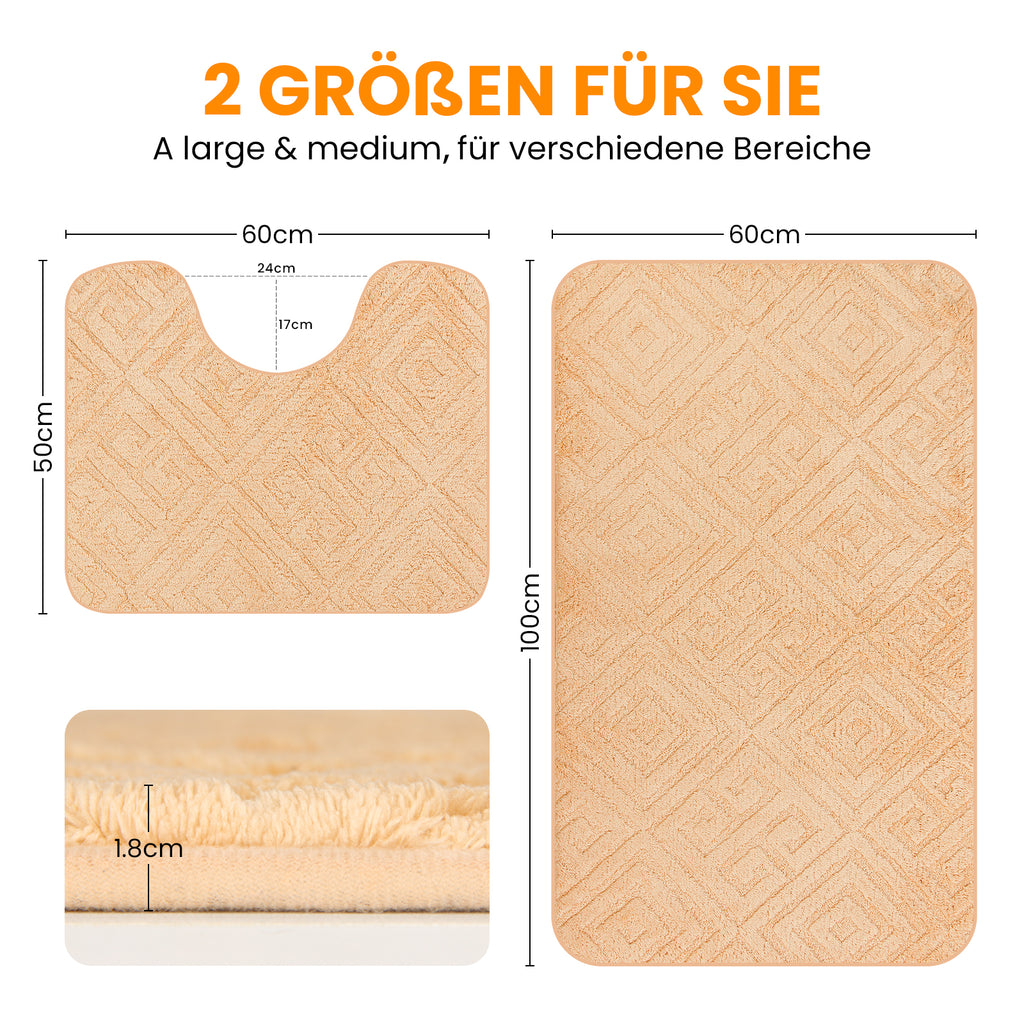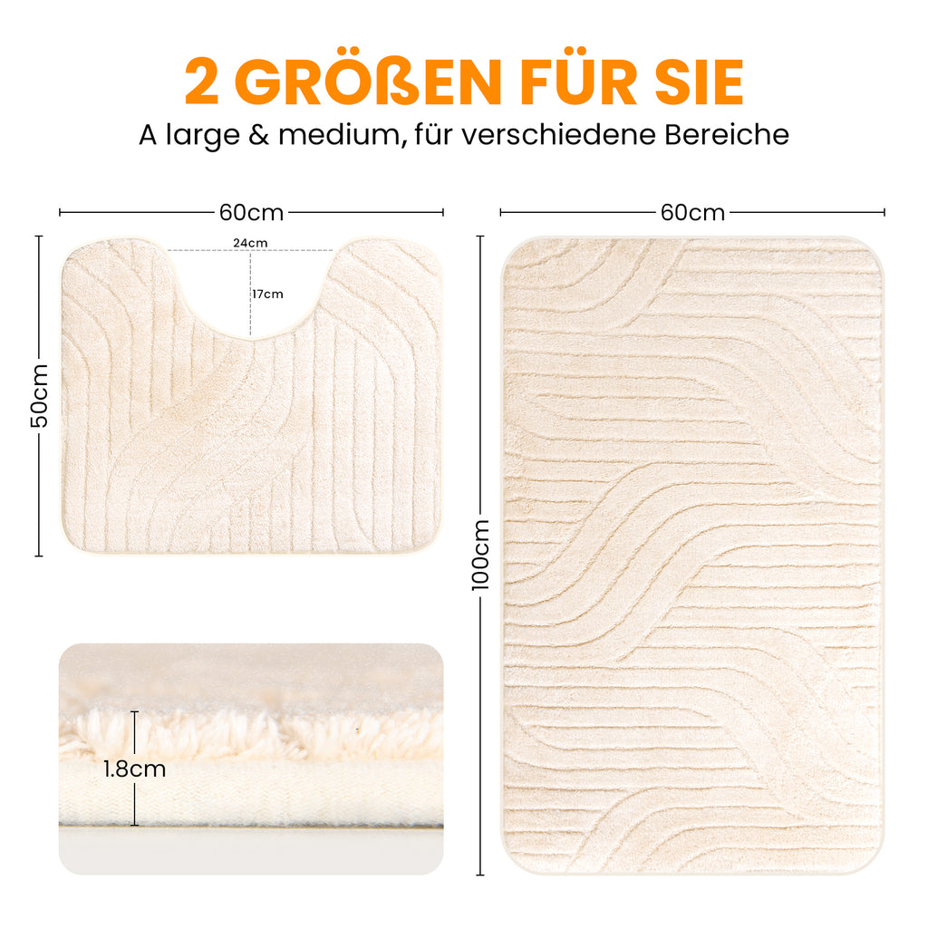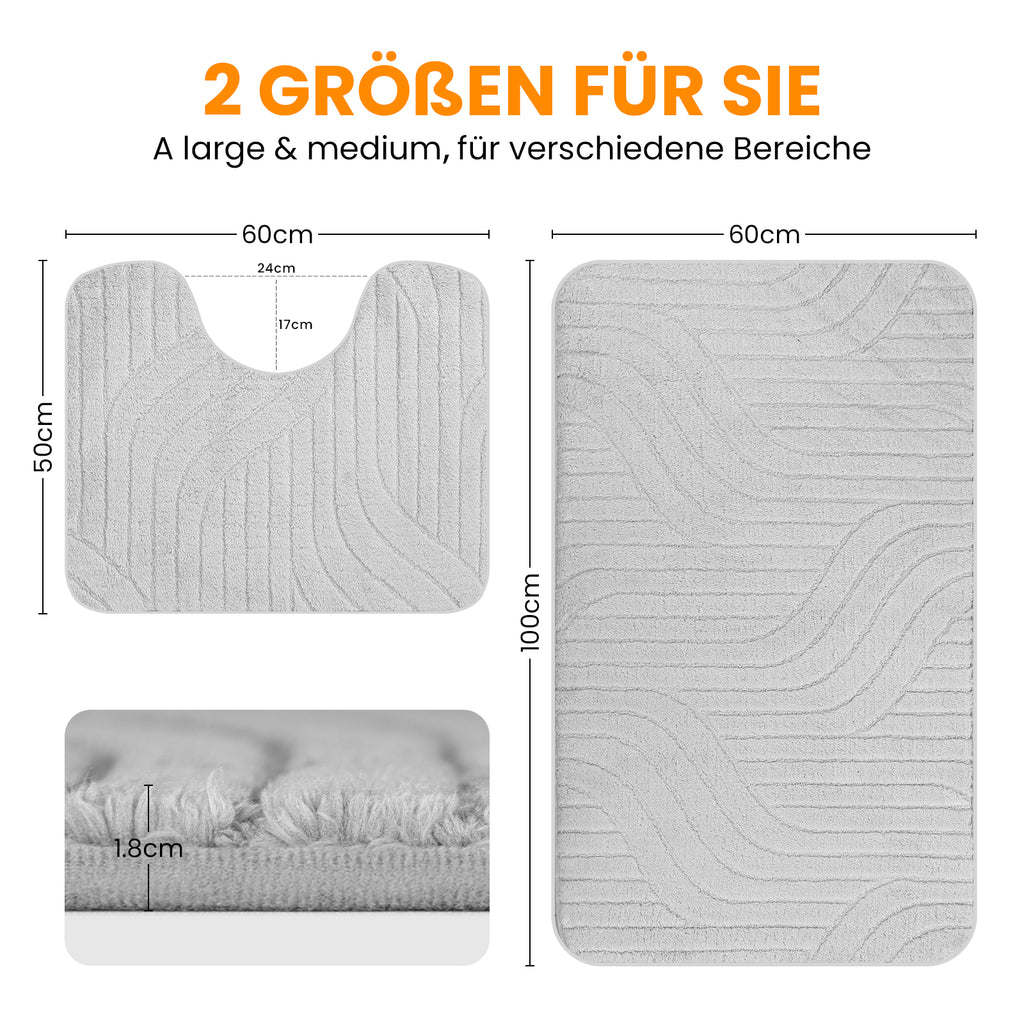 Das HOMELUX Badematten Set vereint modernes Design, hervorragende Saugfähigkeit und rutschfeste Sicherheit. Mit einer Florhöhe von 1,8 cm bietet die flauschige Mikrofaseroberfläche ein angenehm weiches Gefühl unter den Füßen. Dank der einzigartigen Faserverriegelungstechnik sind die Matten dichter und langlebiger als viele herkömmliche Modelle.