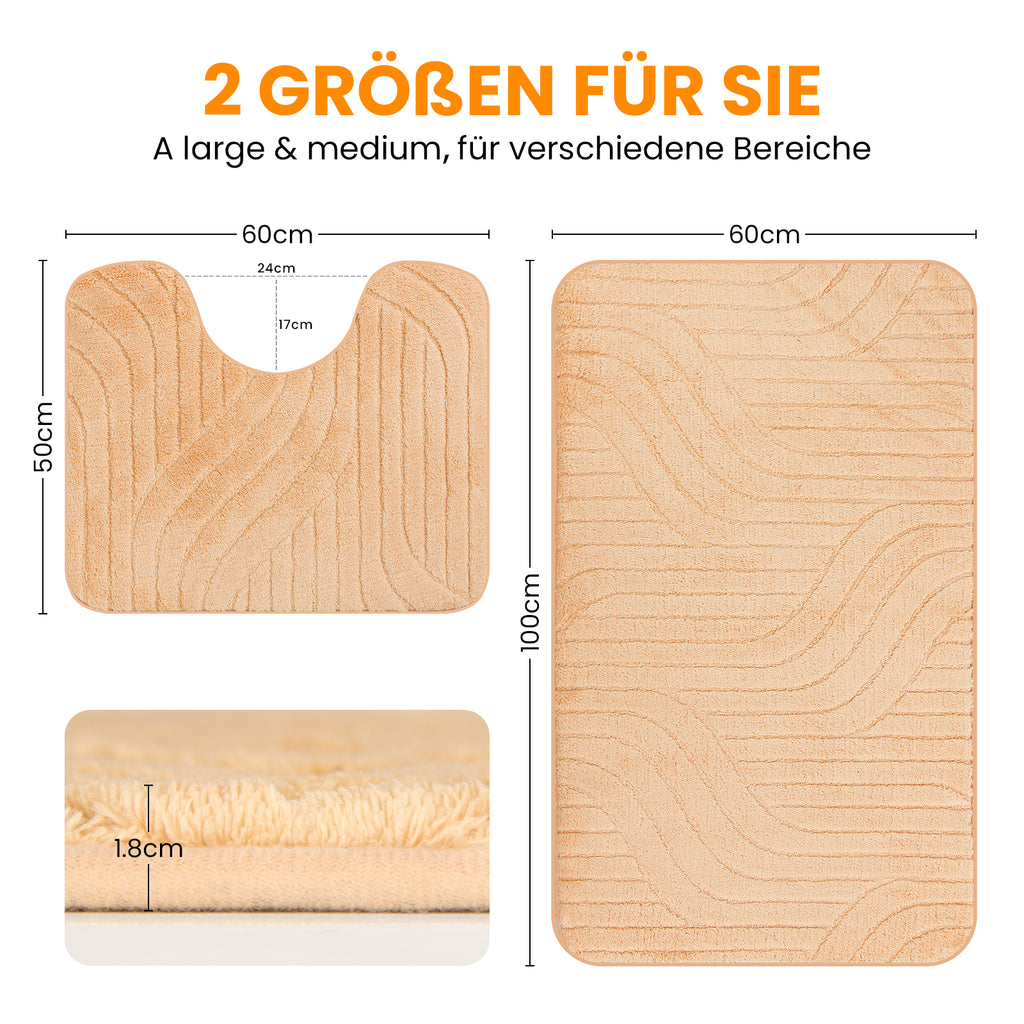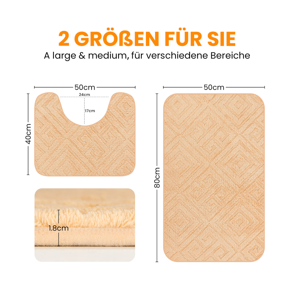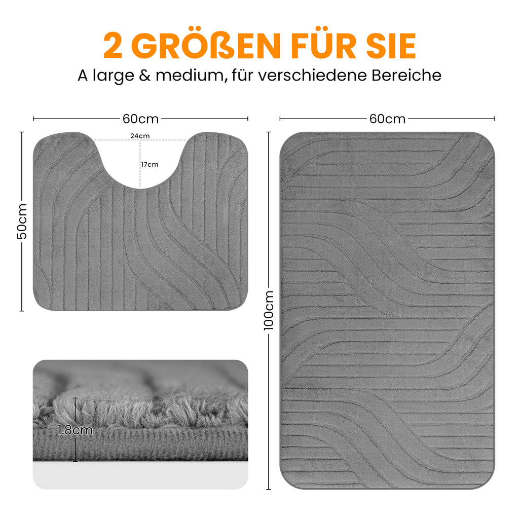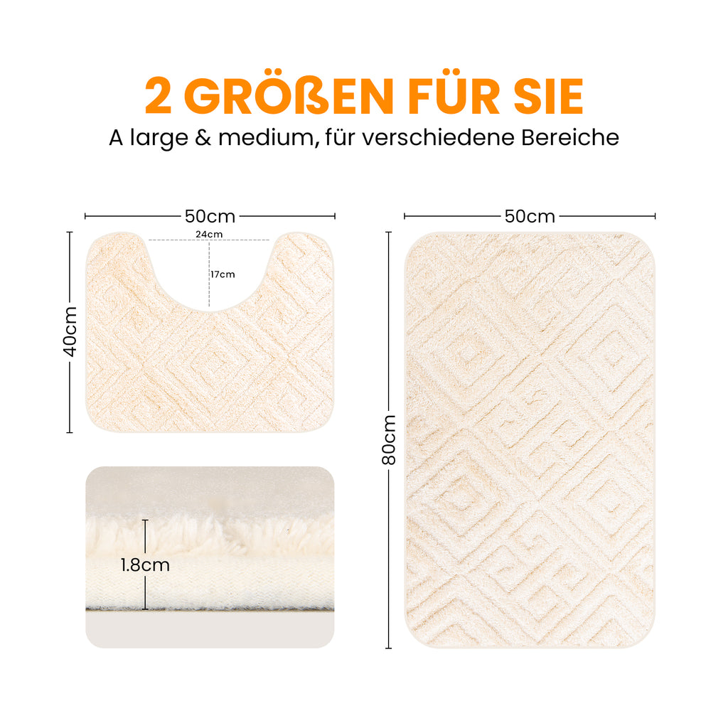 Das HOMELUX Badematten Set vereint modernes Design, hervorragende Saugfähigkeit und rutschfeste Sicherheit. Mit einer Florhöhe von 1,8 cm bietet die flauschige Mikrofaseroberfläche ein angenehm weiches Gefühl unter den Füßen. Dank der einzigartigen Faserverriegelungstechnik sind die Matten dichter und langlebiger als viele herkömmliche Modelle.