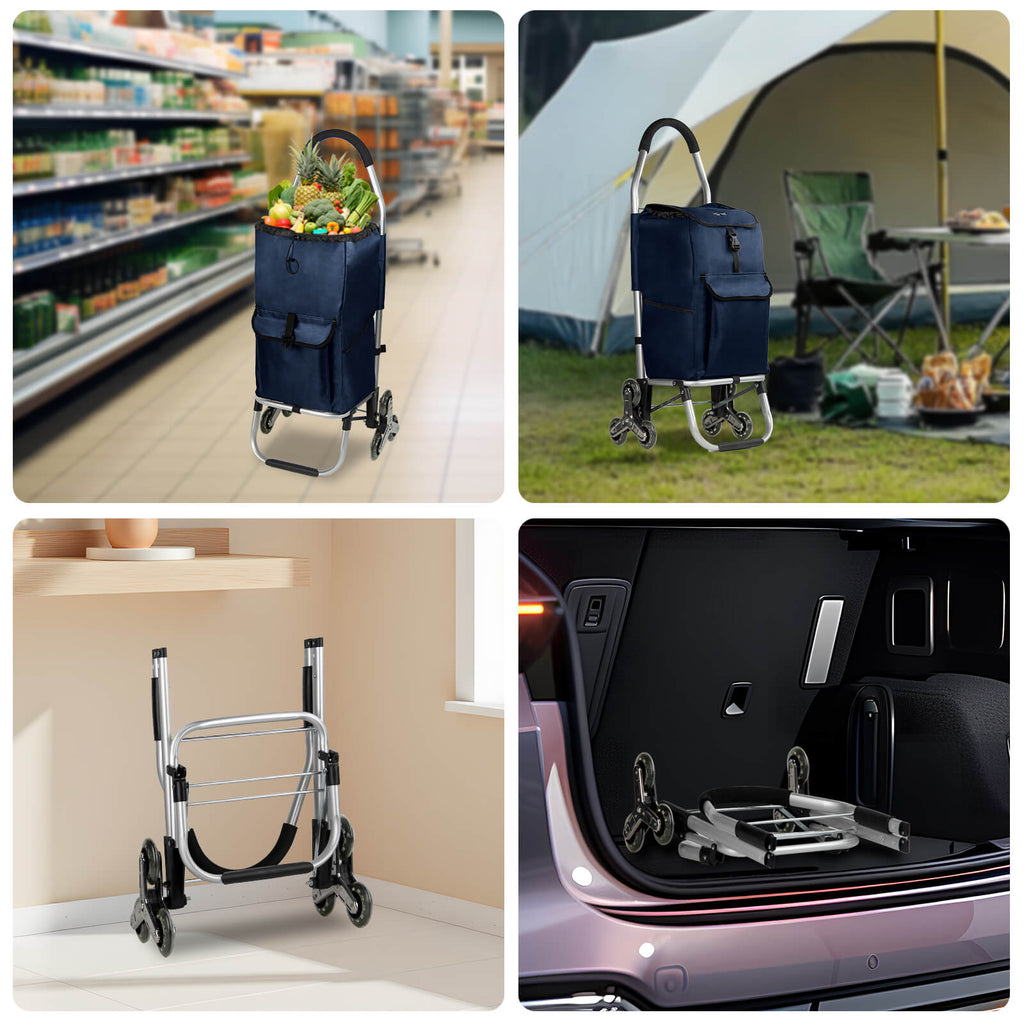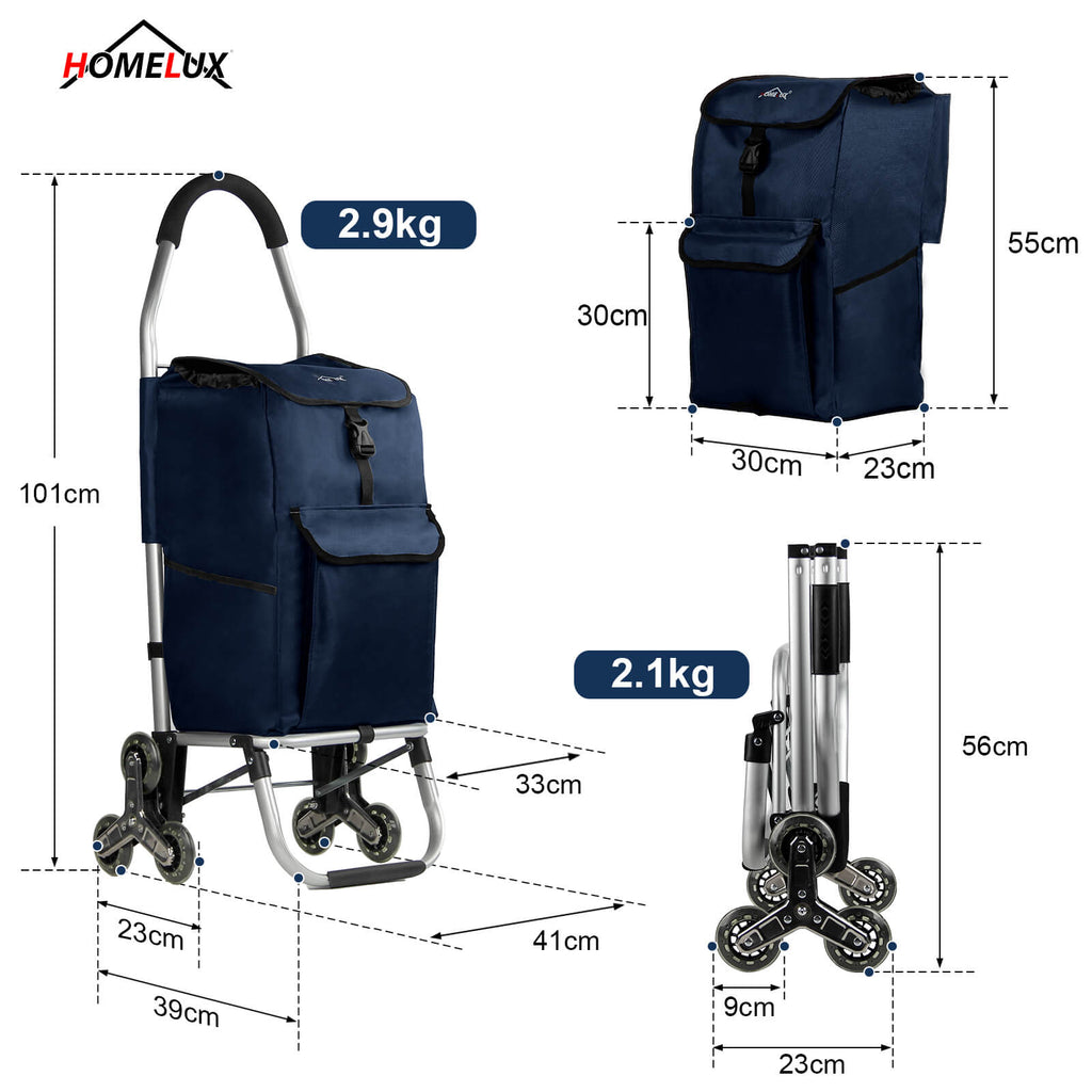 HOMELUX Einkaufstrolley, klappbar, stabil, 41 L Kapazität, multifunktional, Handwagen mit Rollen, abnehmbare Tasche, dreieckige Räder
