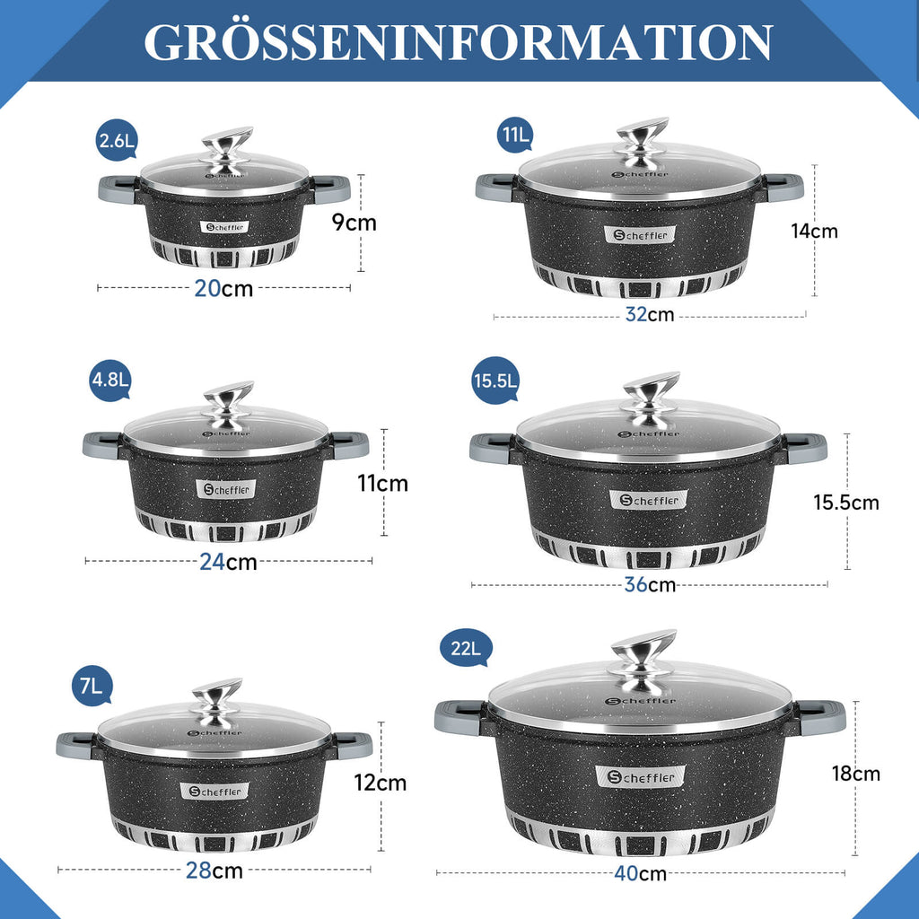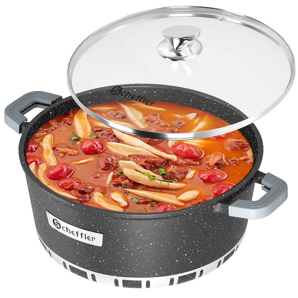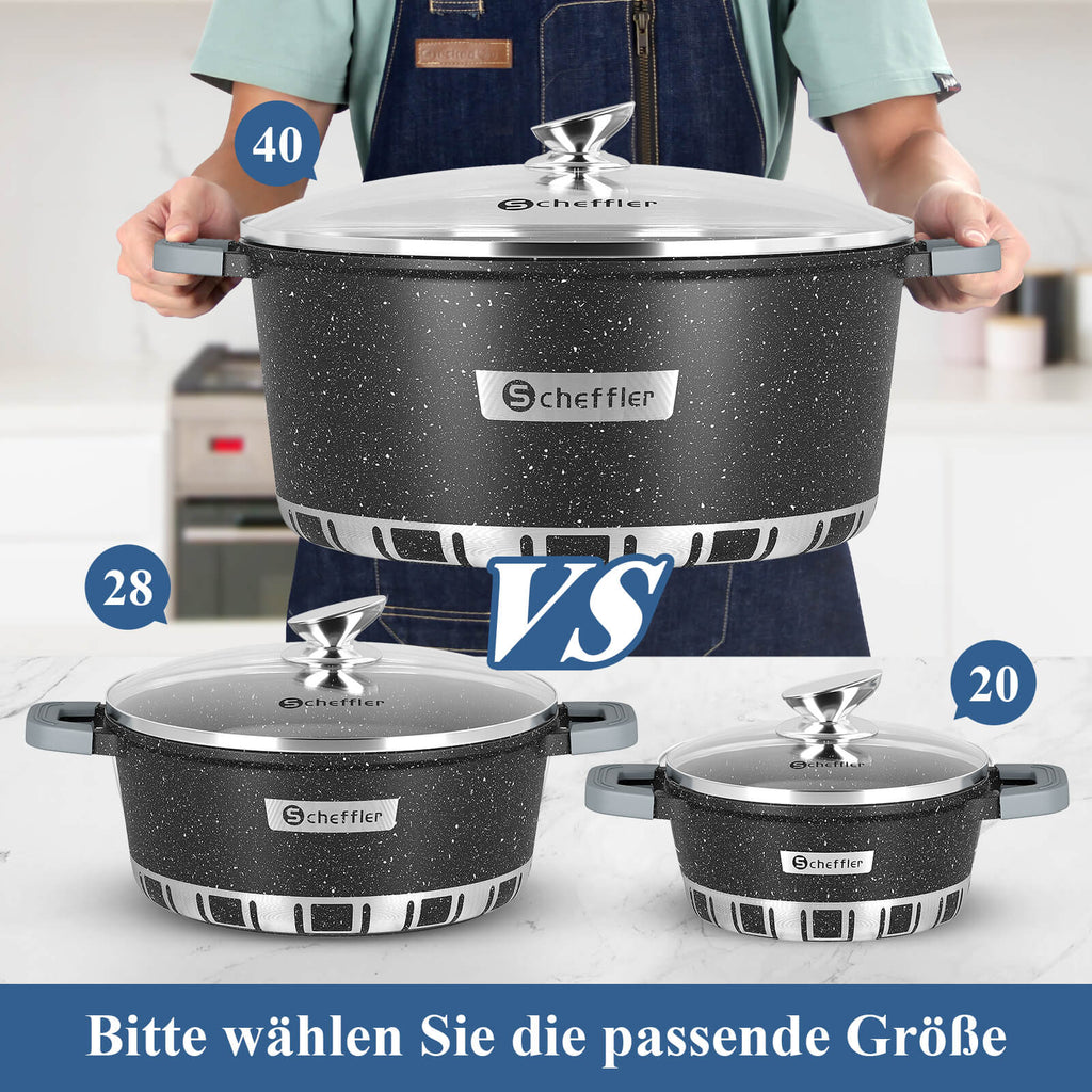 Scheffler Kochtopf mit Glasdeckel für Induktion Aluguss Antihaft Topf, hitzebeständig, energiesparend, frei von PFOA & PFOS