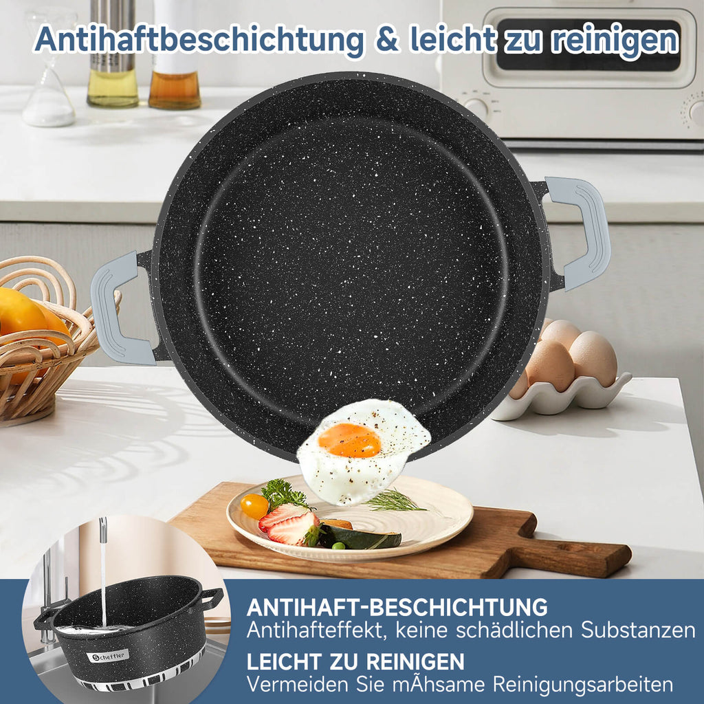 • Marmor-Antihaftbeschichtung: Hochwertige Antihaftschicht, frei von PFOA, PFOS, Blei und Cadmium. Gesundes Kochen mit weniger Öl, einfache Reinigung durch Abspülen oder schnelles Abwischen.