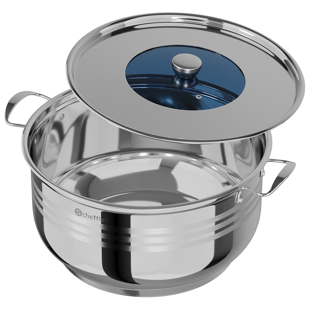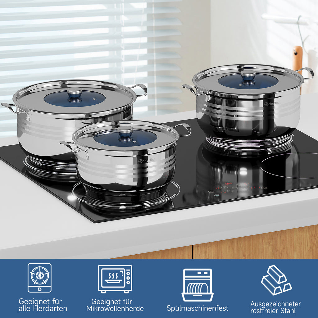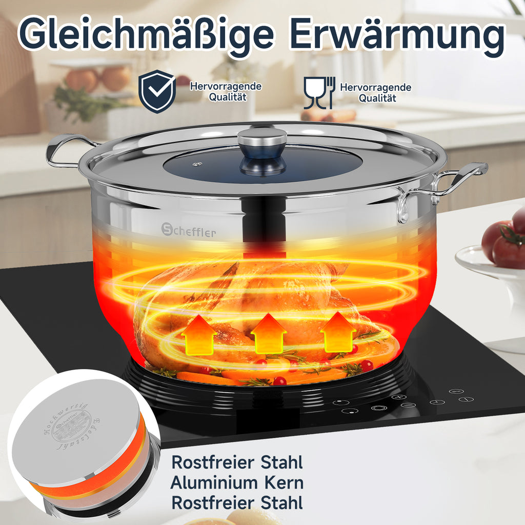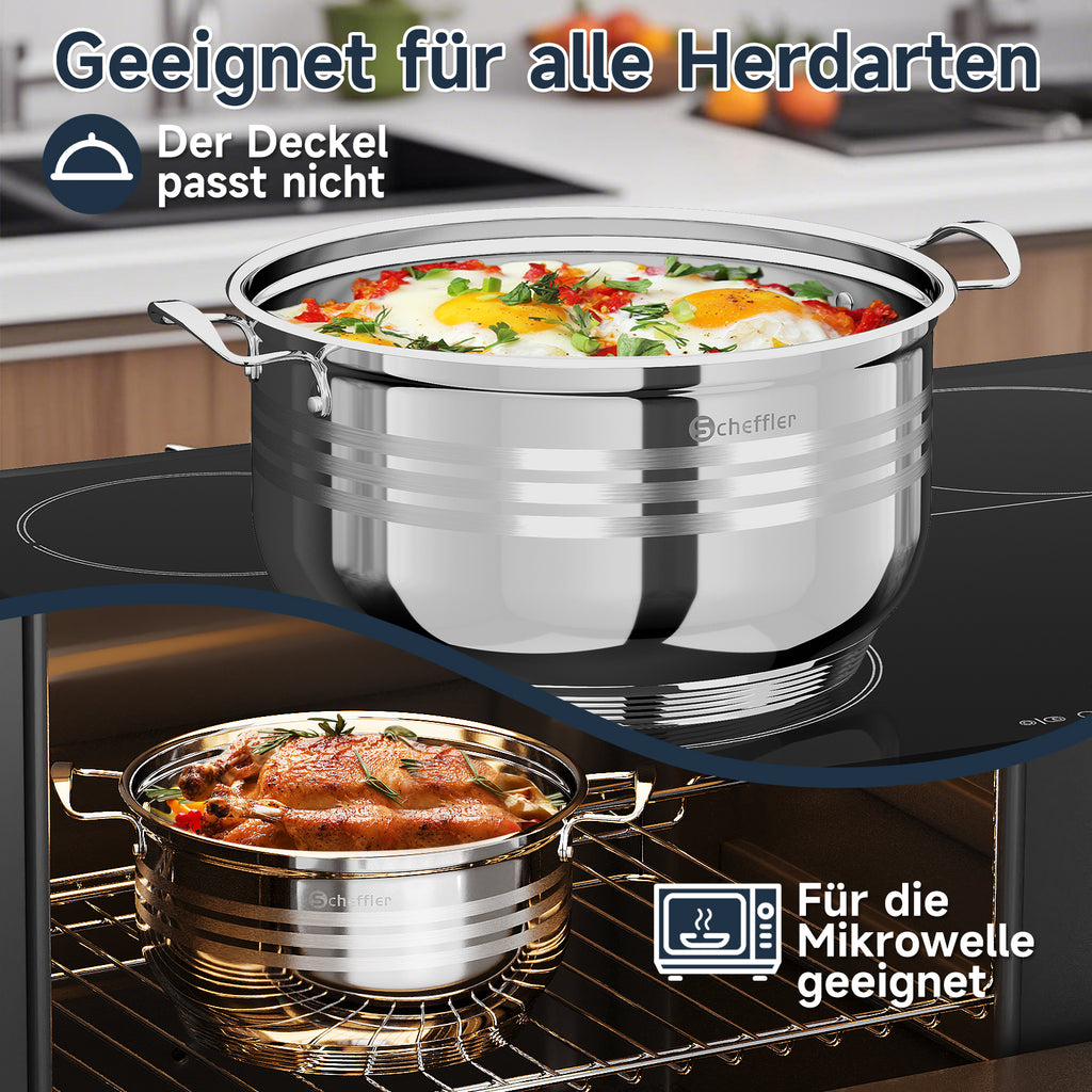 Topfset Scheffler Edelstahl Kochtopf Set Induktion, 6-teiliges Kochgeschirrset mit Deckel, geeignet für alle Herdarten einschließlich 32 cm (12,6 Zoll), 36 cm (14,2 Zoll) und 40 cm (15,7 Zoll) Töpfen.