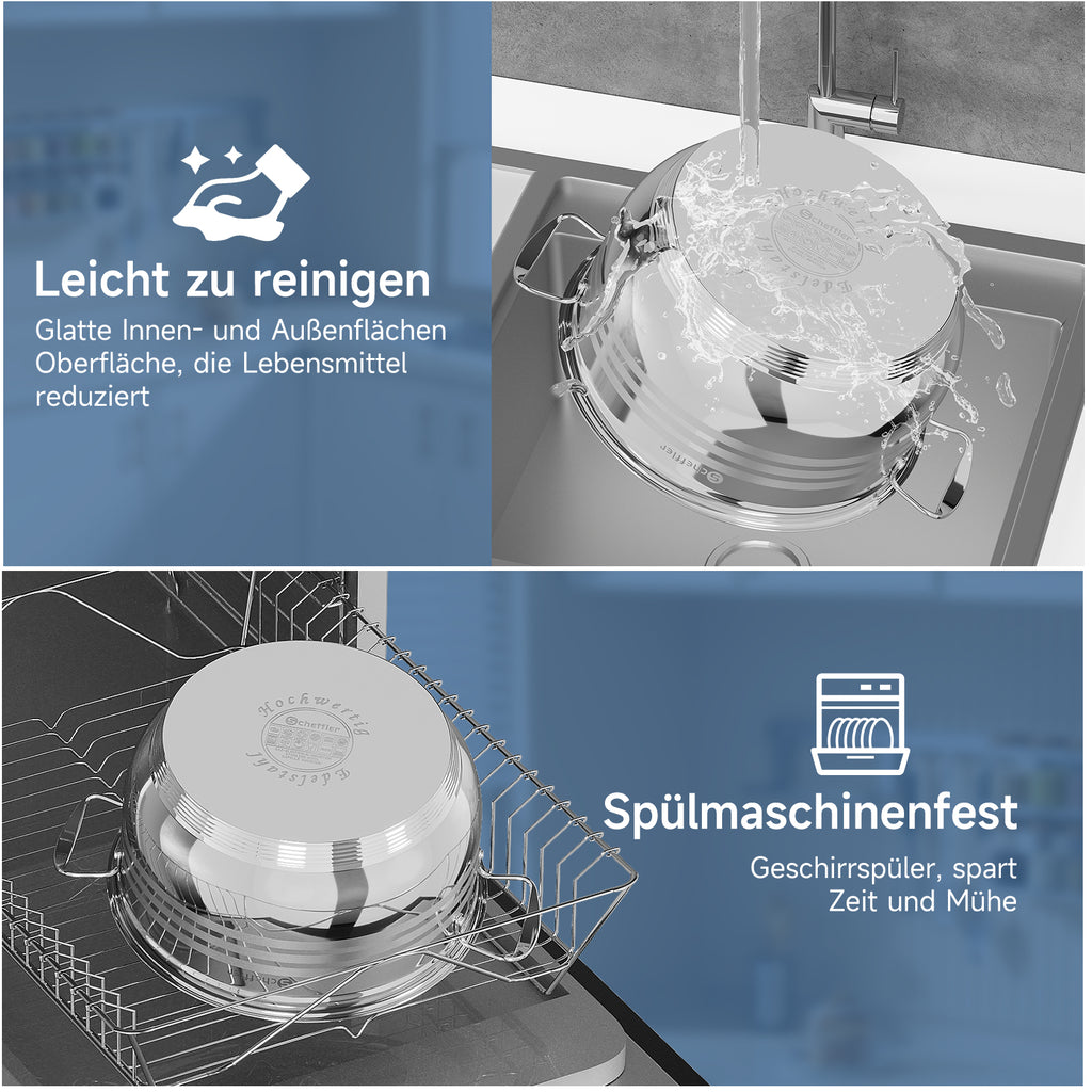 Multifunktionales Topfset: Ideal zum Köcheln, Schmoren, Kochen von Reisbrei oder zum Frittieren. Dieses Set deckt verschiedenste Kochanforderungen mühelos ab.
