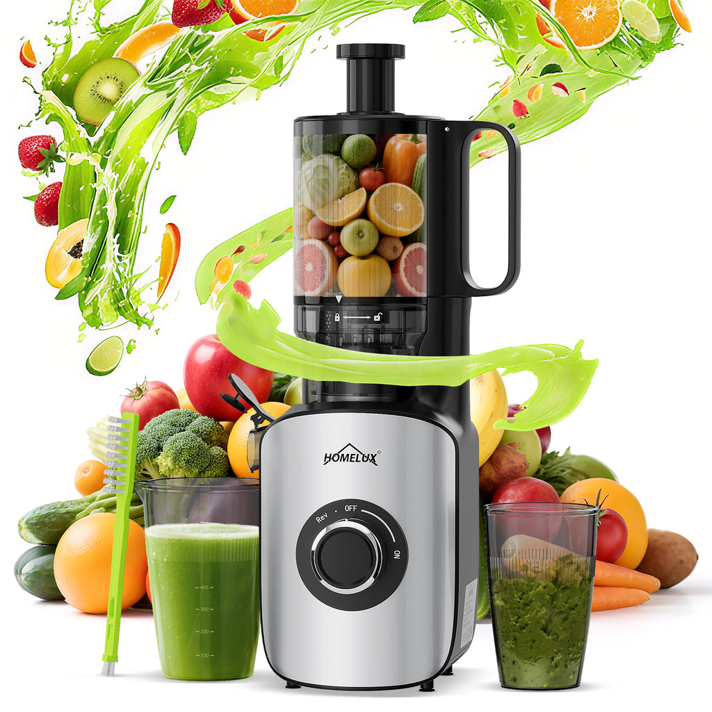 Der HOMELUX Entsafter 220W Slow Juicer wurde entwickelt, um frische, nährstoffreiche Säfte mühelos in Ihren Alltag zu integrieren. Mit seinem extragroßen 126-mm-Einfüllschacht verarbeitet er ganze Früchte und Gemüse ohne vorheriges Schneiden. Die dreistufige Filterung (0,8 mm / 0,5 mm / 0,3 mm) sorgt für einen gleichmäßigen Saftfluss, eine saubere Fruchtfleischtrennung und eine höhere Saftausbeute. Dank der innovativen 55-U/min-Kaltpress-Technologie und dem leistungsstarken 220-W-Motor werden Nährstoffe maximal erhalten und Oxidation minimiert.