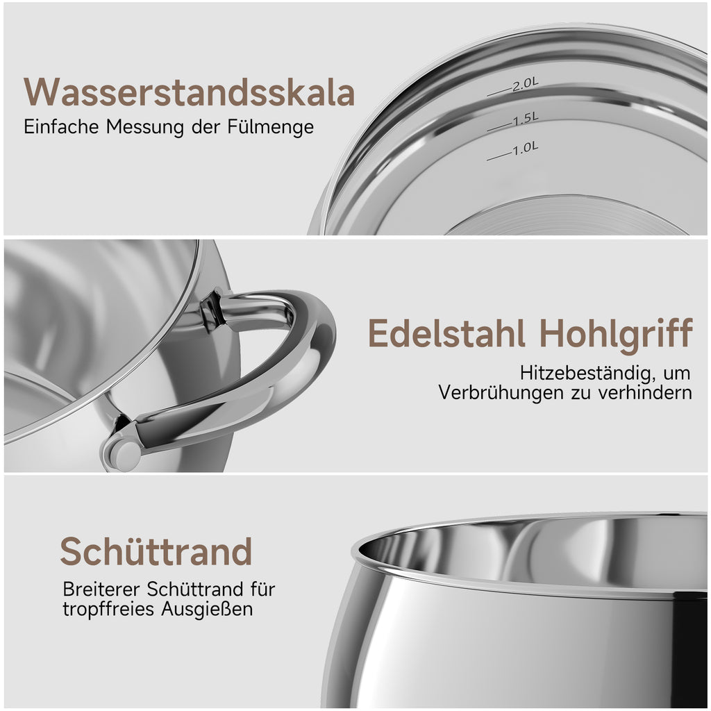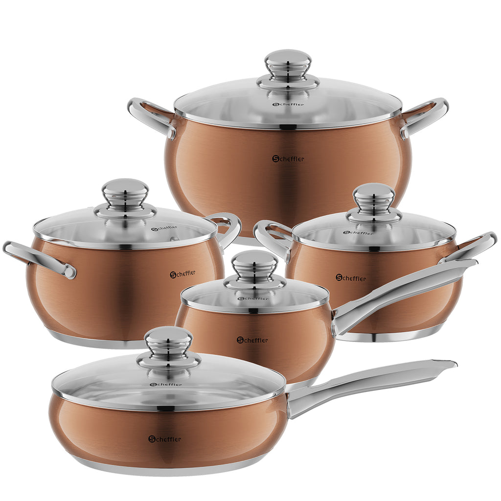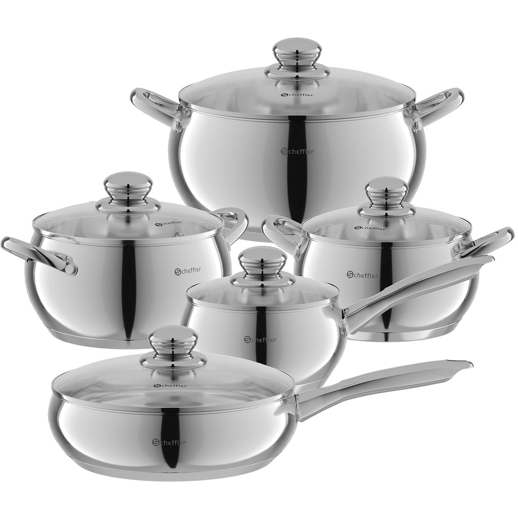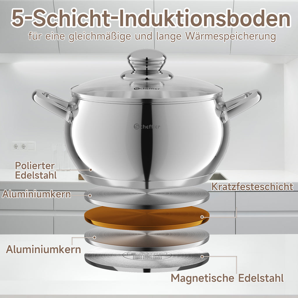 Scheffler Topfset 10-teilig, Induktions-Töpfe Set aus Edelstahl mit Deckeln, geeignet für alle Herdarten.