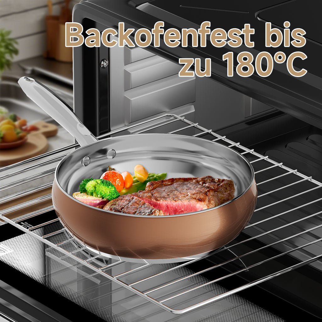 Vielseitiges Kochen: Ideal zum Köcheln, Schmoren, Braten unter Rühren oder Zubereiten von Soßen. Die glatten Innenwände erleichtern die Reinigung und machen das Set perfekt für gesundes und effizientes Kochen.